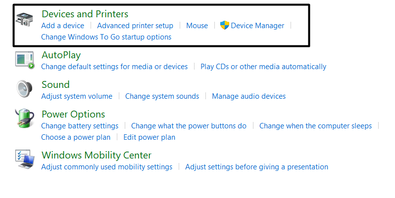 1。開きますコントロールパネルユーティリティWindowsシステムでクリックしますハードウェアとサウンド。