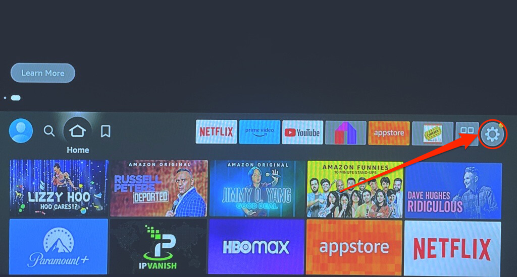 - を選択しますギアアイコンあなたの火のテレビメニューまたはホーム画面で。