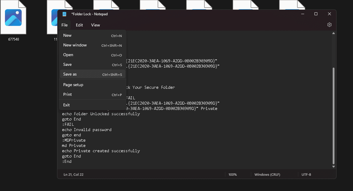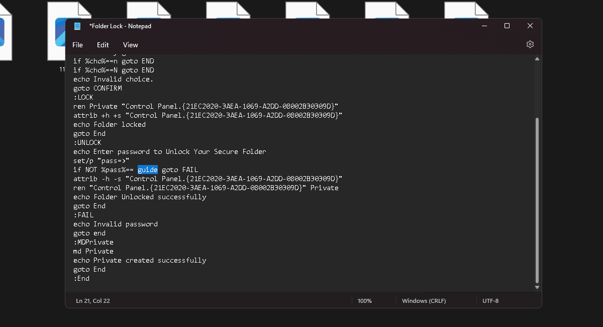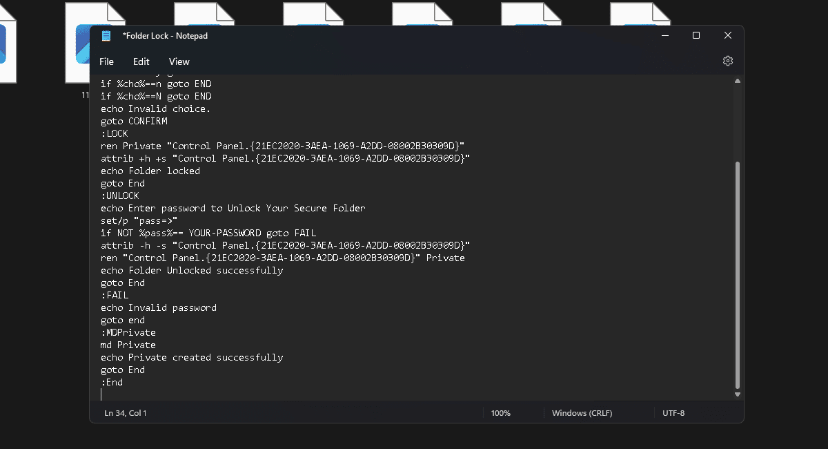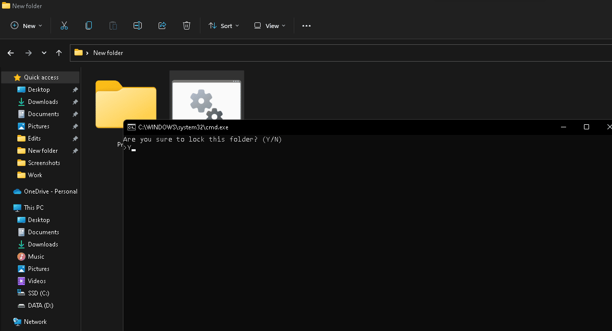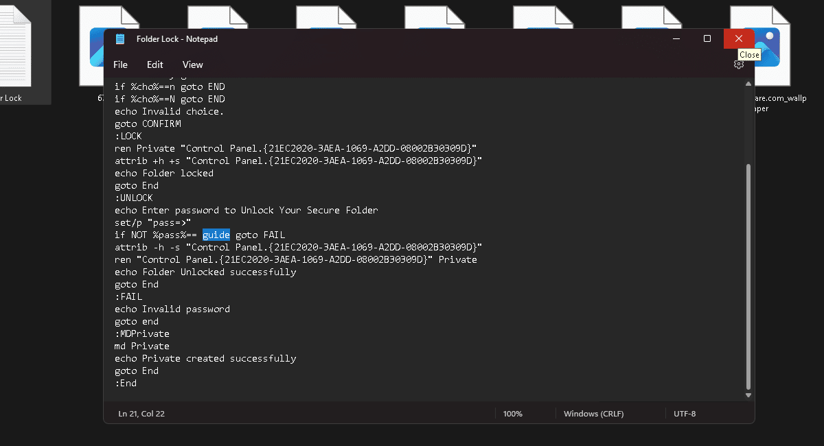 - 閉じる前に、バッチファイルをダブルクリックしてフォルダーをロックすることを忘れないでください。