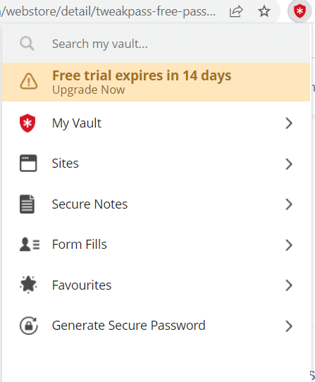ステップ2 - TweakPass Password ManagerのWeb拡張機能をインストールします。拡張機能は、Google Chrome、Microsoft Edge、Opera、およびFirefoxで利用できます。ここでは、TweakPassのGoogle Chrome拡張機能をダウンロードし、資格情報に記録しました。