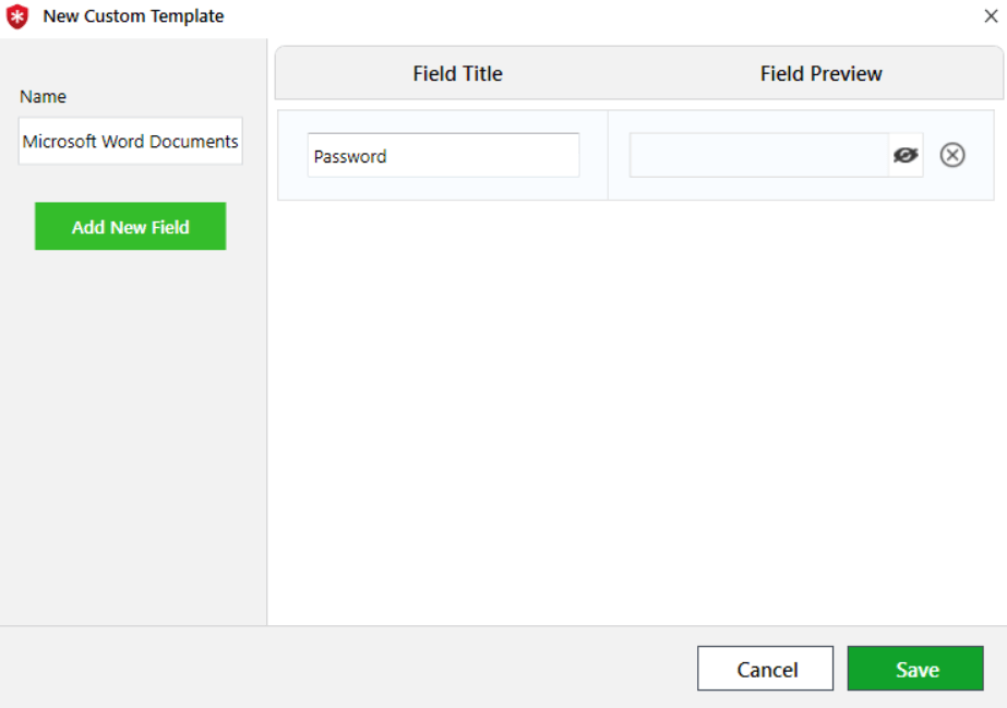 ステップ6 - クリックしてください新しいフィールドを追加します選択しますパスワード。名前のセクションで、Microsoft Wordドキュメントを書きます。あなた自身の名前を選ぶことができます。でフィールドタイトル書くパスワードをクリックします保存ボタン。