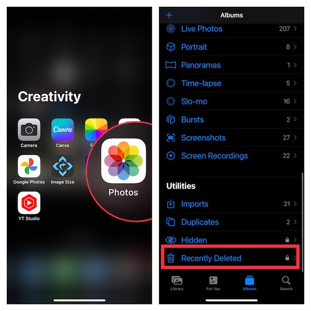 4。その後、を選択します最近削除されましたアルバム。