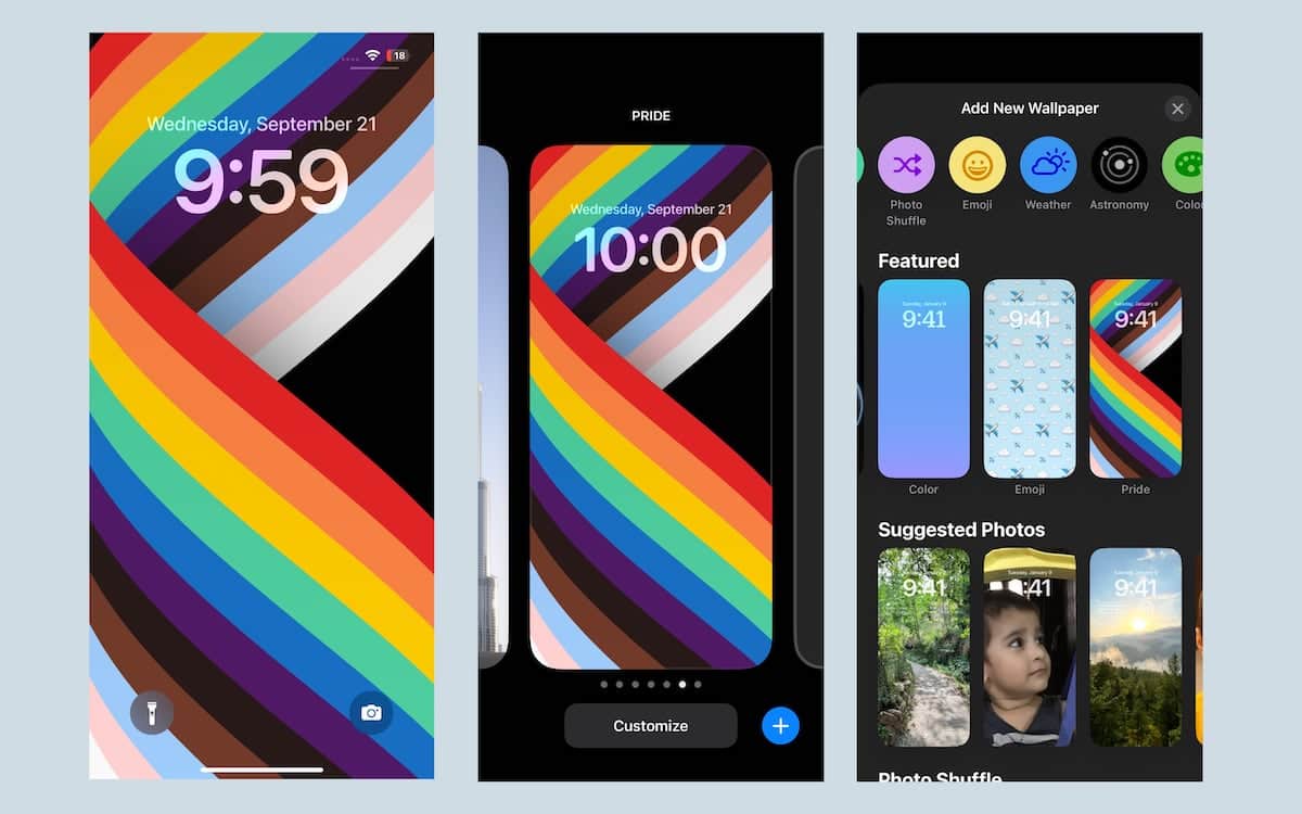 - ロック画面をロングプレスし、「+」アイコンをタップして新しい壁紙を追加します。