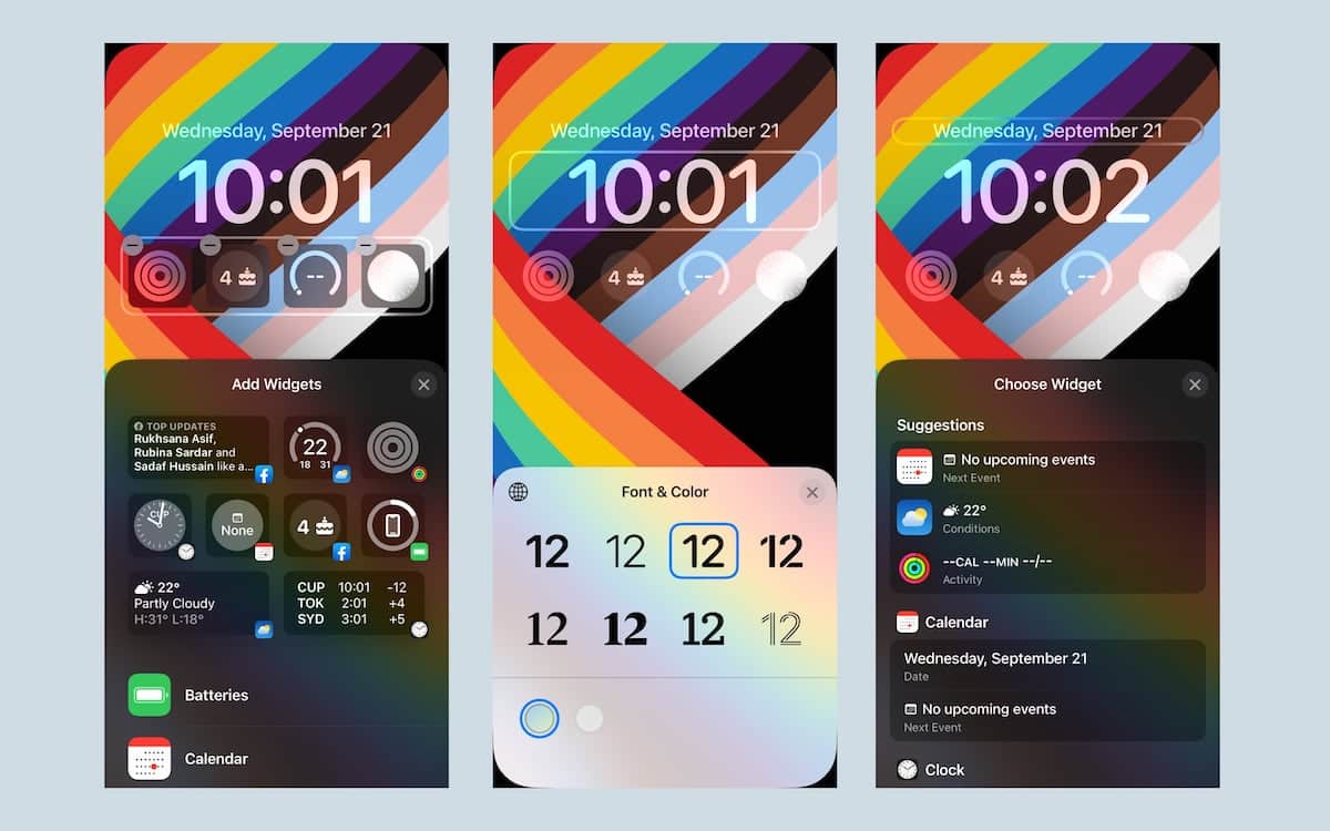 - 好みのウィジェットとフォントを選択した後、「完了」をタップして壁紙をカスタマイズします。