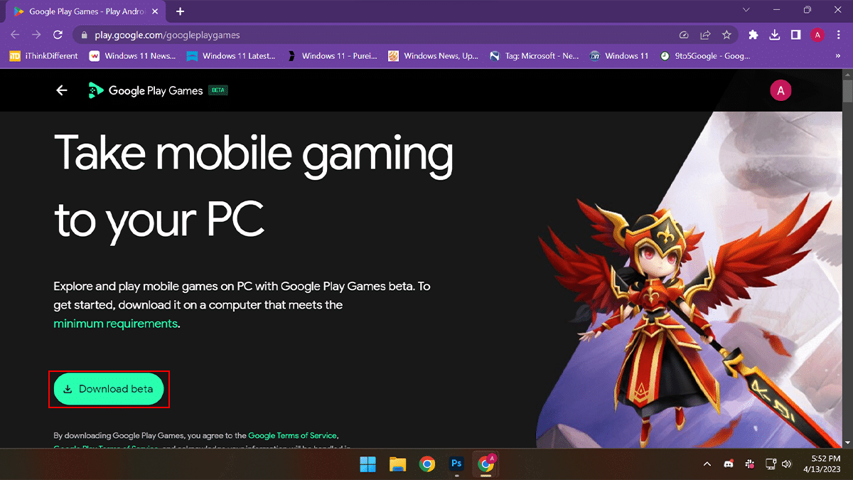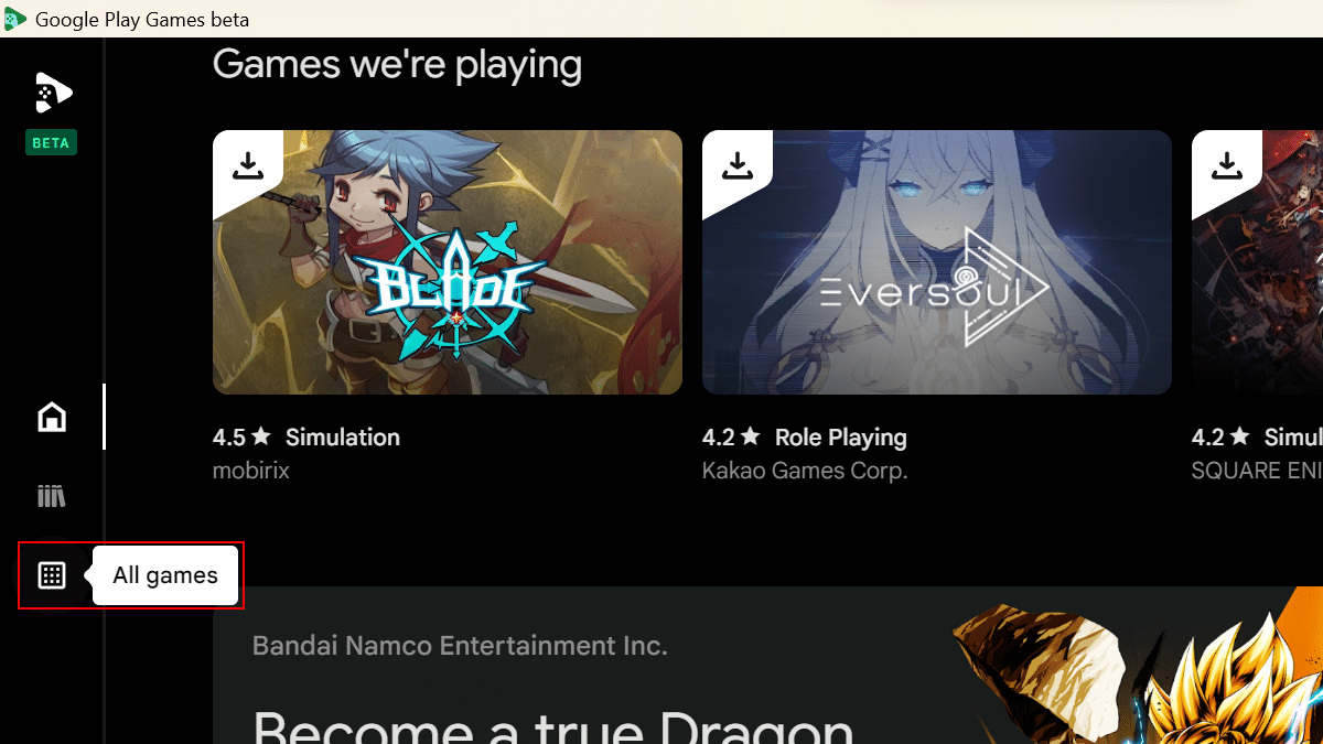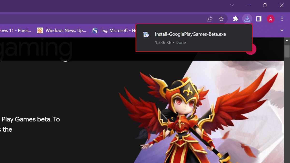 - 開けるGoogle Playゲーム(Web)>クリックしますダウンロード ベータインストーラーをダウンロードするボタン。