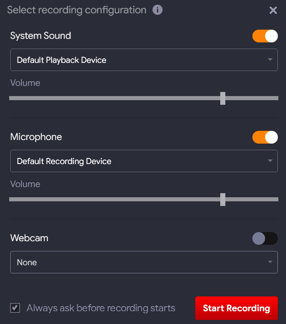ステップ3 - 赤い色をクリックします記録ボタン。有効にしますシステムサウンドトグルスイッチ。