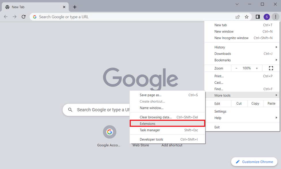ステップ3 - をクリックします拡張機能アドレスバーの横にあるアイコンとスクリーンの拡張機能をクリックします。