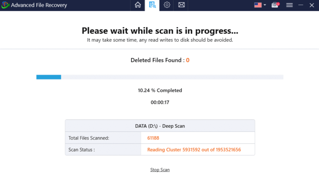 作家のヒント:包括的かつ詳細なスキャンプロセスについては、ディープスキャンモードの使用を検討してください。このモードは、永久に紛失または削除されたファイルを回復するのに非常に効果的です。