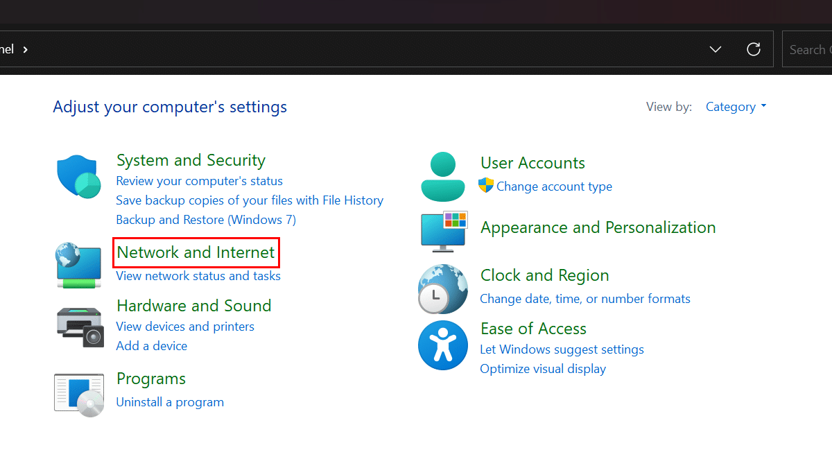 - をクリックしますアダプター設定を変更します左ペインのオプション。