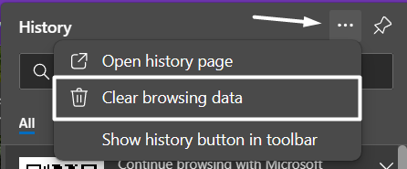 2。クリックしてください3つのドット(…)に歴史プロンプト 選択します閲覧データをクリアしますドロップダウンメニューからオプション。