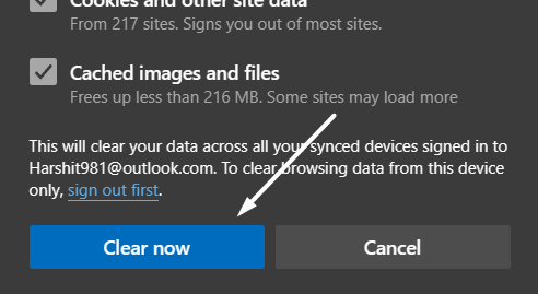 4。最後に、をクリックします今すぐクリアのボタン閲覧データをクリアしますブラウザのキャッシュをクリアするように求められます。