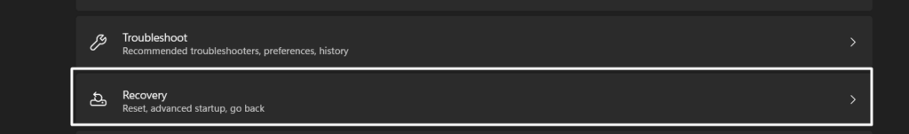 1。を押しますWindows + iキーボードショートカットを開く設定アプリに移動します回復セクション。