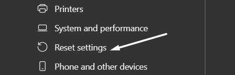 2。を選択します設定ドロップダウンと選択からのオプション設定をリセットしますサイドバーから。