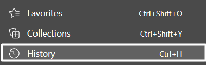 1。起動しますMicrosoft Edgeプログラムして開きます歴史のセクションCtrl + hキーボードショートカット。