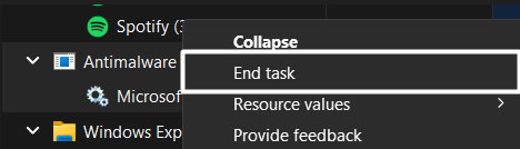 4。同じセクションの特定のプロセスを右クリックして、タスクを終了します右クリックメニューのオプション。