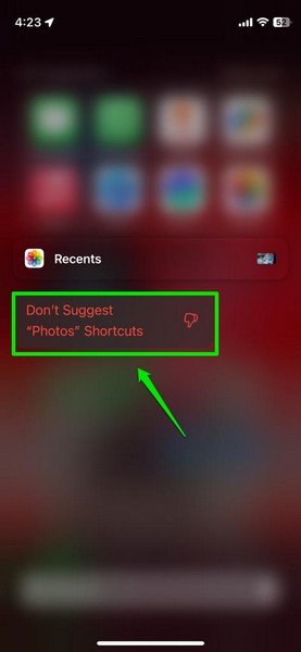 4。ほとんどの場合、コンテキストメニューには次のオプションが表示されます。「[アプリ名]」ショートカットを提案しないでください。