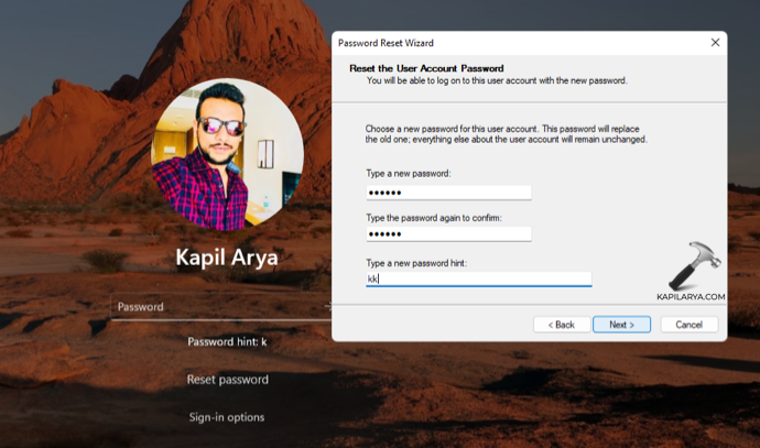 これで、ログイン画面に戻り、前のステップで作成したばかりの新しいパスワードを入力して、Windows 11にログインできます。