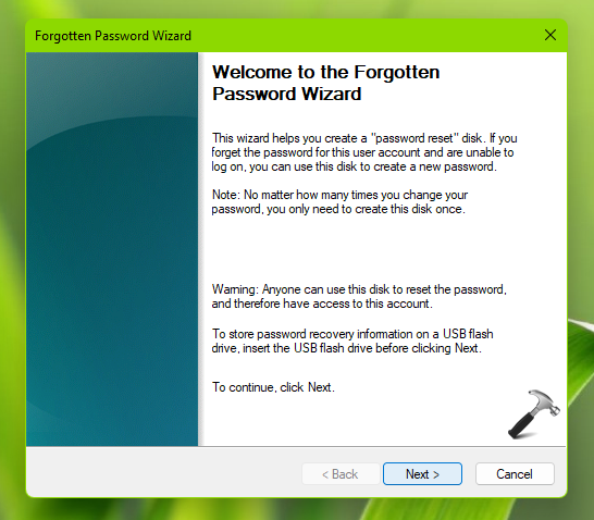 ここで説明している方法は、ローカルアカウントのパスワードをリセットするために非常に一般的で信頼性があります。この方法を適用するには、パスワードを知っているときに以前に作成されたパスワードリセットディスクが必要です。パスワードリセットディスクの作成方法の簡単なレビューを次に示します。