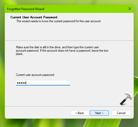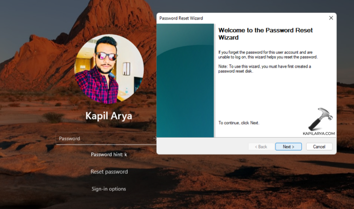 1。誤ったパスワードまたはパスワードの何かを入力して、Enterを押します。あなたは今見ることができますパスワードをリセットします画面で使用可能なリンク。それをクリックするだけで、パスワードリセットウィザードが表示されます。クリック次。