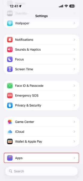 下にスクロールしてタップしますアプリ>タップしますサファリ設定にアクセスします。