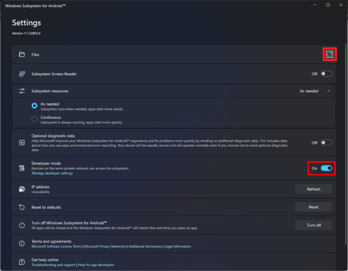 これで、改造されたWSAの開発者モードを有効にする必要があります。以下の手順に従って、WSAの開発者モードをアクティブにします。