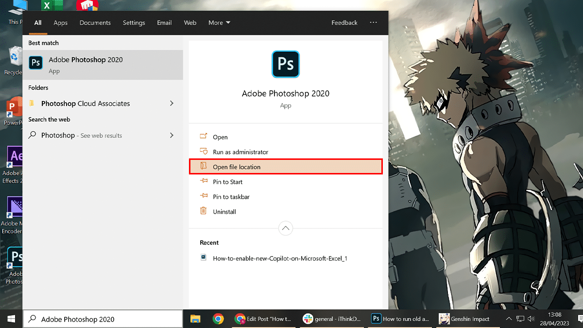 - 開ける始める>検索古いアプリケーション>「」を選択します。ファイルの場所を開きます" オプション。