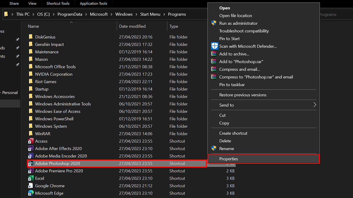 - 右クリックしますアプリを選択しますプロパティオプション。