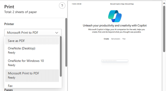 ステップ4:次のページで、利用可能なオプションから「PDFに保存」を選択します。