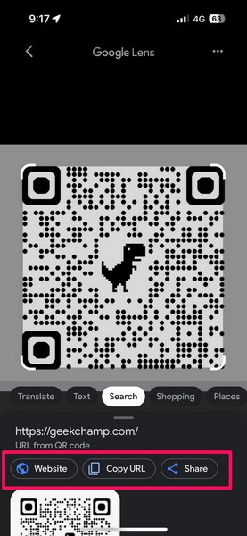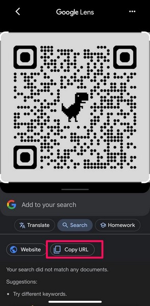 5。タップすることもできますURLボタンをコピーしますスマートフォンの画像のQRコードからWebサイトリンクをコピーするには。