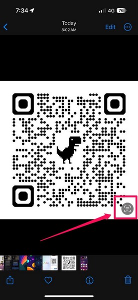 3。さて、QRコードがスキャン可能である場合は、そうしますライブテキストアイコンを見つけます画像の右下隅。