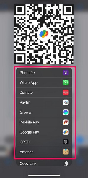 6。QRコードがWebサイトにつながる場合、iOSデバイスのデフォルトのブラウザでそれを開くオプションを取得します。 QRコードが支払いコードの場合、iPhoneのすべてのサポートされている支払いアプリで開くオプションが表示されます。