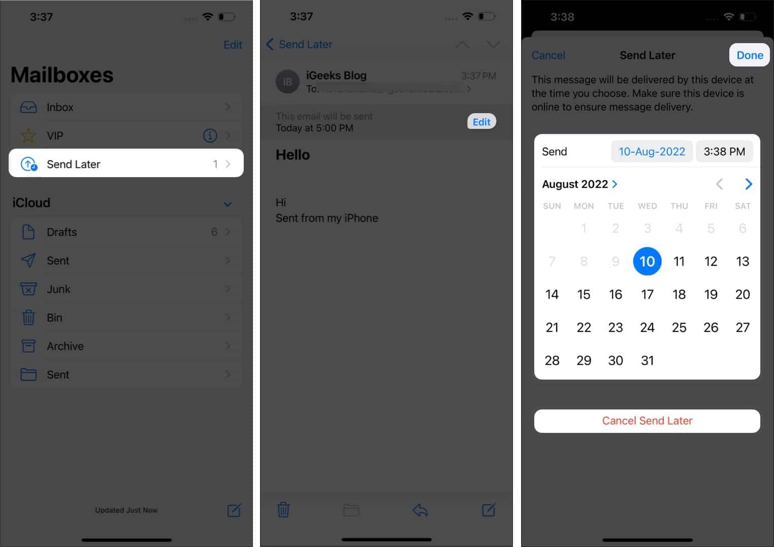 Sparkアプリを使用して後でiPhoneとiPadでメールを送信する