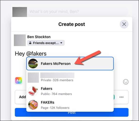 共有グループを確認することもできます。ユーザーから以前に作成されたコメントが公開グループで欠落している場合、ブロックされている可能性があります。また、それらの共有グループでコメントの人々にタグを付けることもできます。ブロックされた人がドロップダウンメニューに表示されない場合、これはあなたがブロックされた別の指標になります。