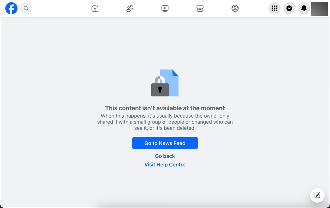 プロファイルへの直接URLを知っている場合は、それを試すこともできます。ブロックされている場合、プロファイルにアクセスできません。 Facebookはあなたがブロックされていることをあなたに伝えませんが、あなたは現在、プロファイルにアクセスできないことを示すエラーメッセージが表示されます。