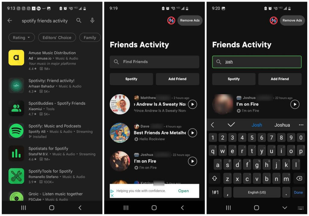 Google PlayまたはApple Storeを開き、「Spotify Friends Activity」を検索します。友達がSpotifyで何をプレイしているかを見ることができる多くのアプリが表示されます。