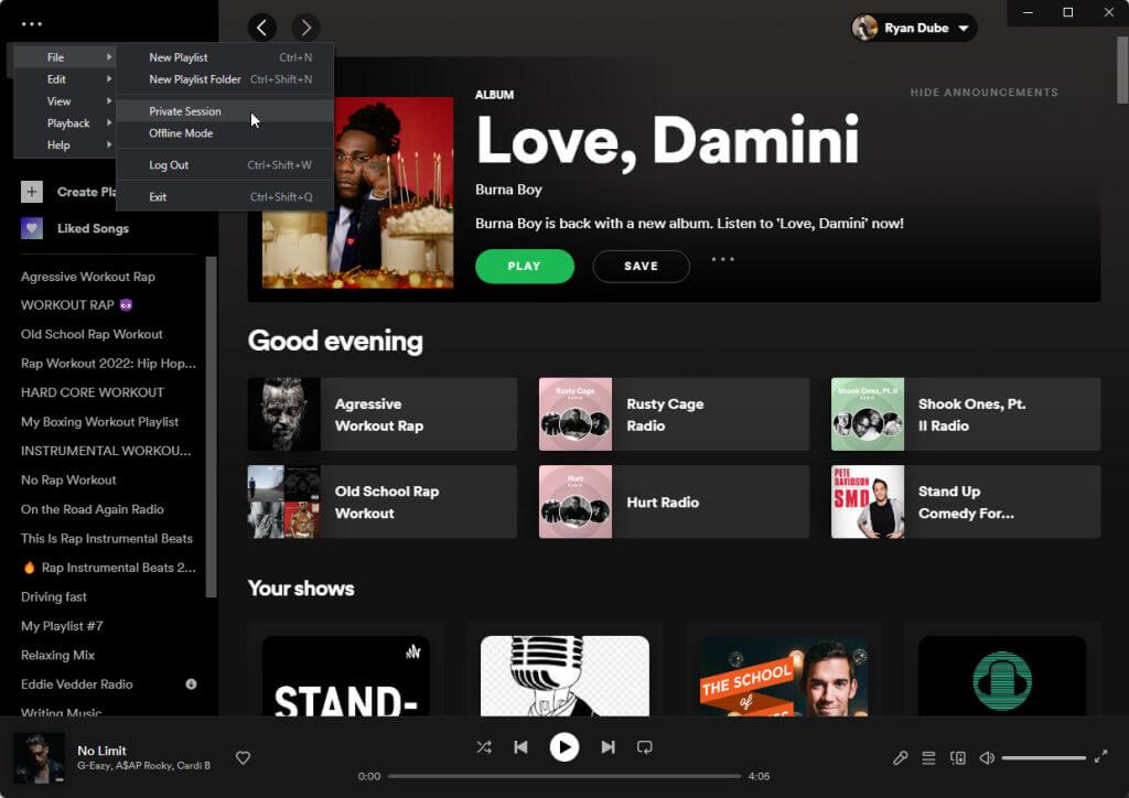 上記のプロセスを繰り返して選択しますプライベートセッション再びこのモードを無効にし、すべてのSpotifyアクティビティを友達に再び見えるようにします。