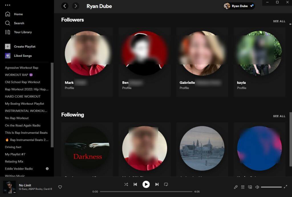 どの友達があなたをフォローしているかを知りたい場合は、プロフィールアイコンを選択して選択しますプロフィールドロップダウンメニューから。に下にスクロールしますフォロワーSpotifyであなたをフォローしている友人のリストを見るためのセクション。