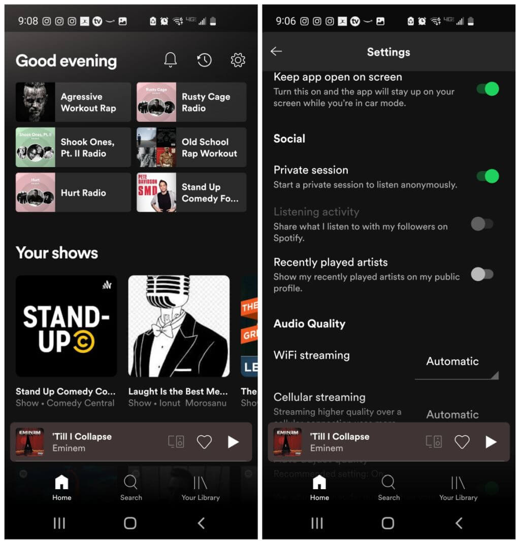 これにより、Spotifyアプリをプライベートリスニングモードに切り替えます。ここでは、耳を傾けるものはすべて、Spotifyであなたをフォローしているすべての友人と共有されません。アプリにプライベートリスニングモードがアクティブであることを示す兆候は表示されないため、完了したら無効にすることを忘れないでください!