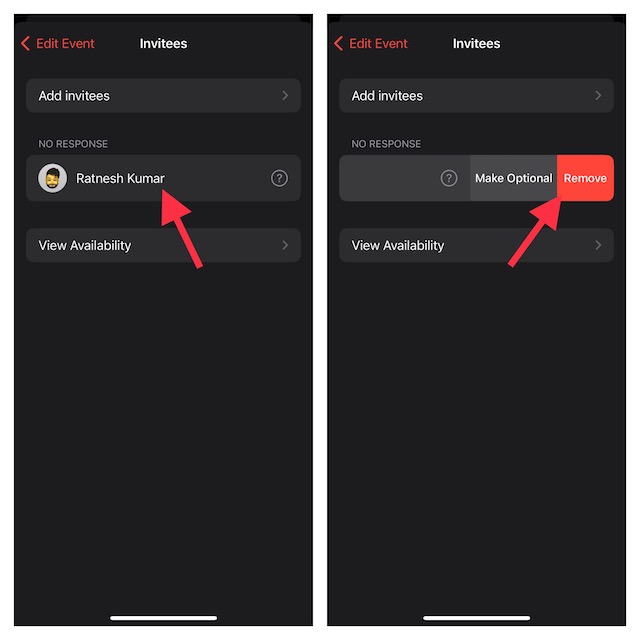 - 任意の人を削除するには、特定の人を左にスワイプして削除します。