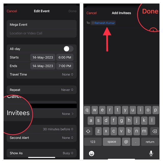 - 後で、より多くの人をイベントに招待したい場合は、招待状の追加をタップします - >人のメールアドレスを入力して、ヒットします終わり。
