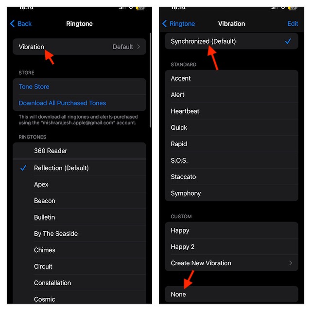 - Sounds&Hapticsパターンのセクションで、を選択します着信音オプション。