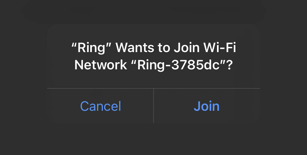 - 選択しますわかったリングWiFiネットワークに参加するように求められたとき。