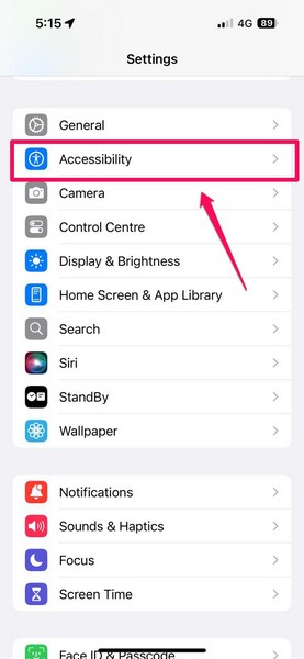 1。起動します設定アプリに行きますアクセシビリティ設定リストから。