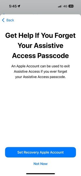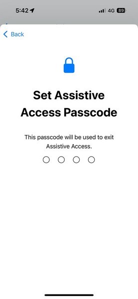 5。 Assistive Access PassCodeを提供しますデバイスで機能を有効にするため。