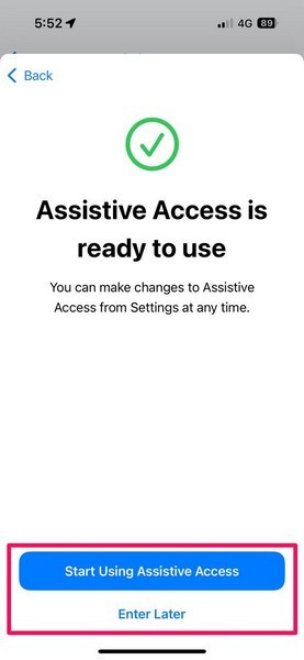 6。パスコードを提供したら、iPhoneは、Assistive Accessを有効にして再スプリングします。