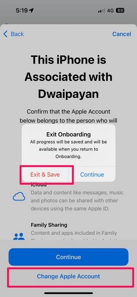7。ただし、Appleアカウントを変更する場合は、Appleアカウントを変更しますボタン。これにより、セットアッププロセスが終了し、新しいAppleアカウントにサインインするまで進捗を節約できます。