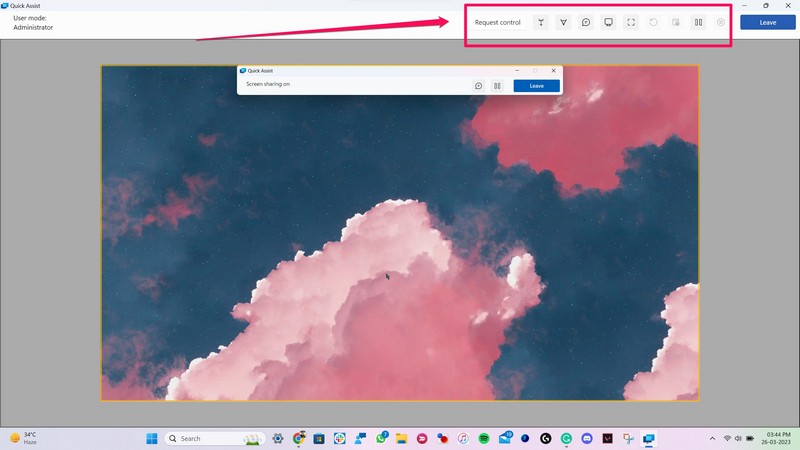 1。ヘルパーとして、できます制御を獲得するためのリクエストクイックアシストアプリを介してPCまたはラップトップからリモートで制御するレシーバーデバイスの。