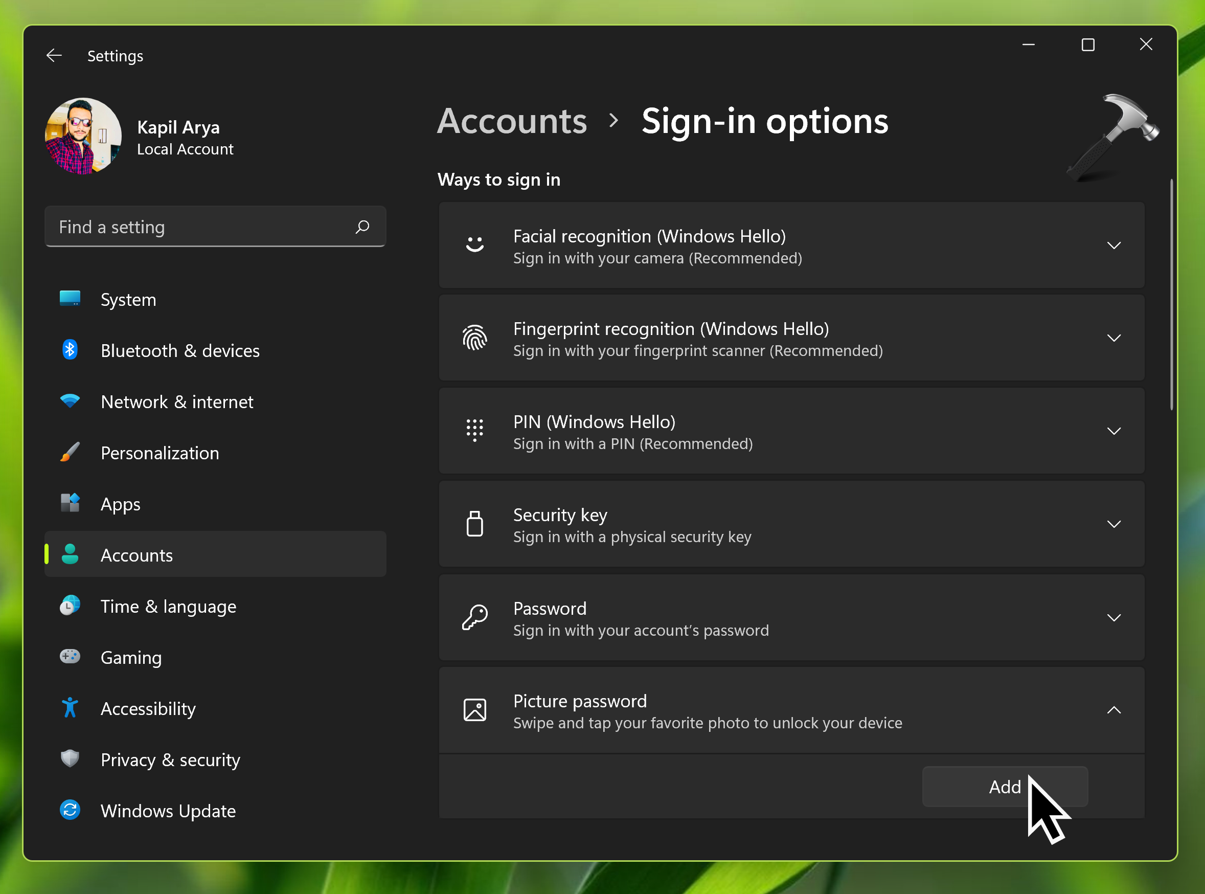 Windows 11オペレーティングシステムでは、ユーザーアカウントにサインする方法が複数ありました。 Windows 11でピン、フェイシャルログイン、指紋ログインのセットアップ方法、フェイシャルログイン、指紋ログインをすでに見ています。これで、Windows 11にサインする別の方法があります。写真パスワード。このサインインオプションを使用すると、自分の選択の画像を使用してWindows 11にログインできます。このステップバイステップガイドでは、Windows 11で画像パスワードを設定する方法を学びます。