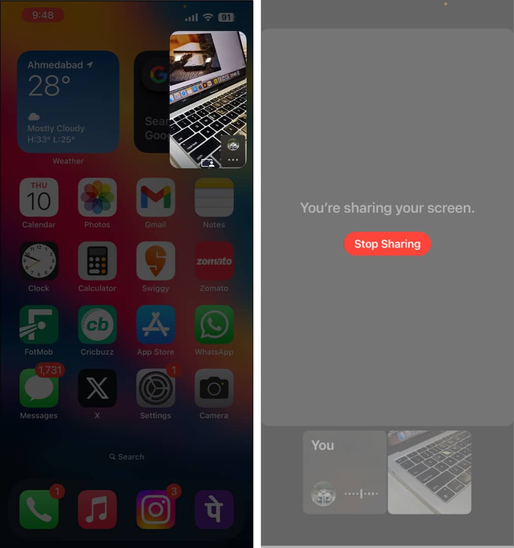 iPhoneの別のアプリに切り替えた場合、画面共有を続行できますか?