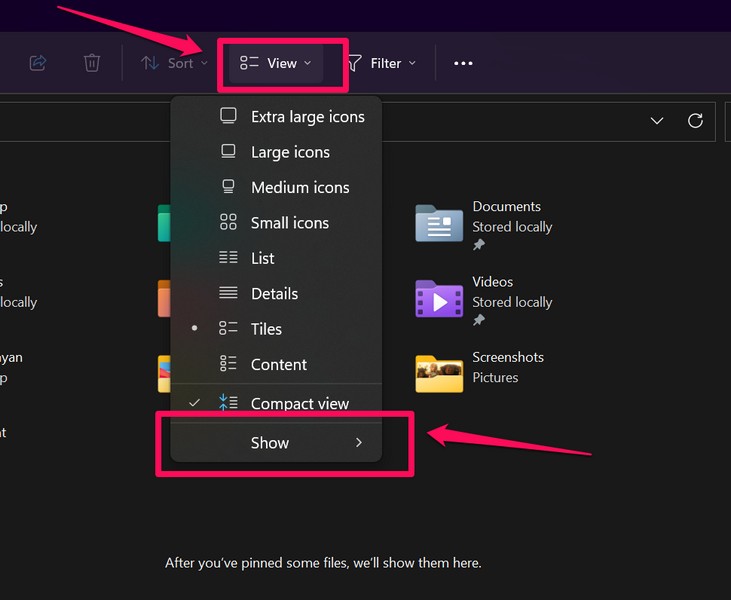 これで、Windows 11でファイル拡張子を表示する別の方法は、ファイルエクスプローラーの[表示]オプションでファイル名拡張機能を有効にすることです。これにより、Windows 11 PCまたはラップトップの表示ファイル拡張機能機能が有効になり、デバイス上の名前の最後にある各ファイルのファイル拡張機能を表示できます。